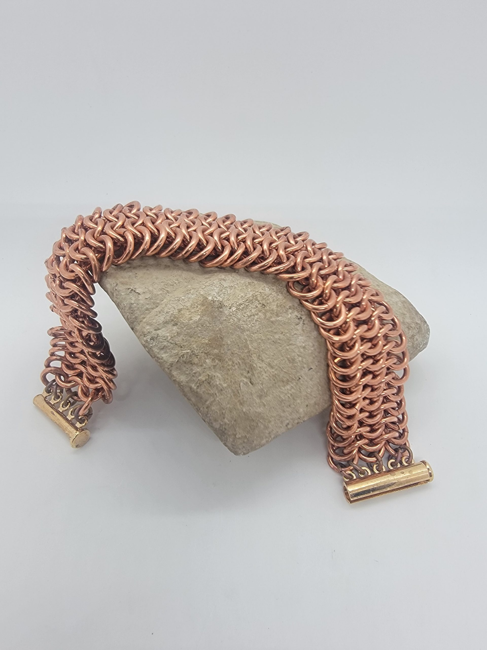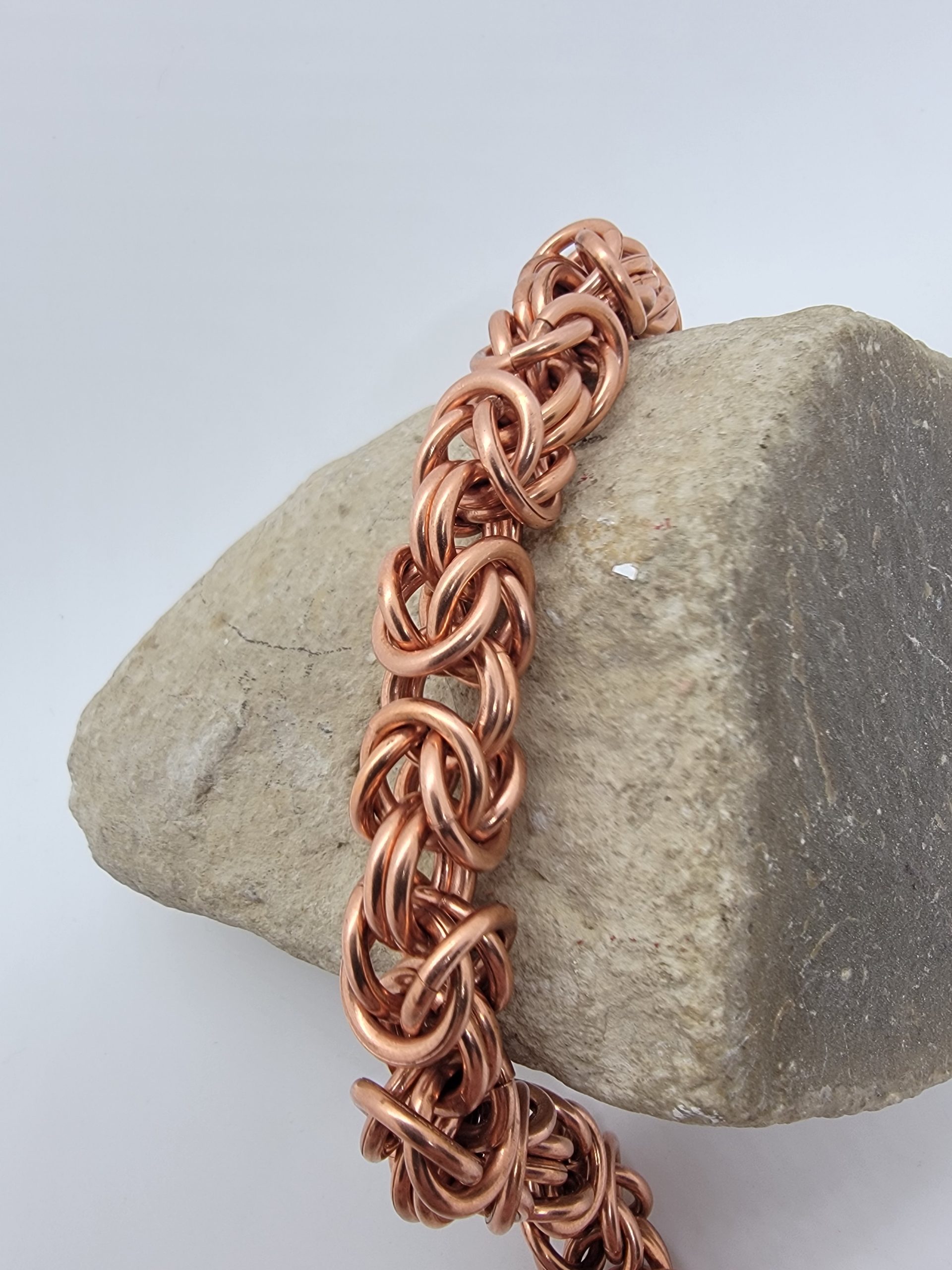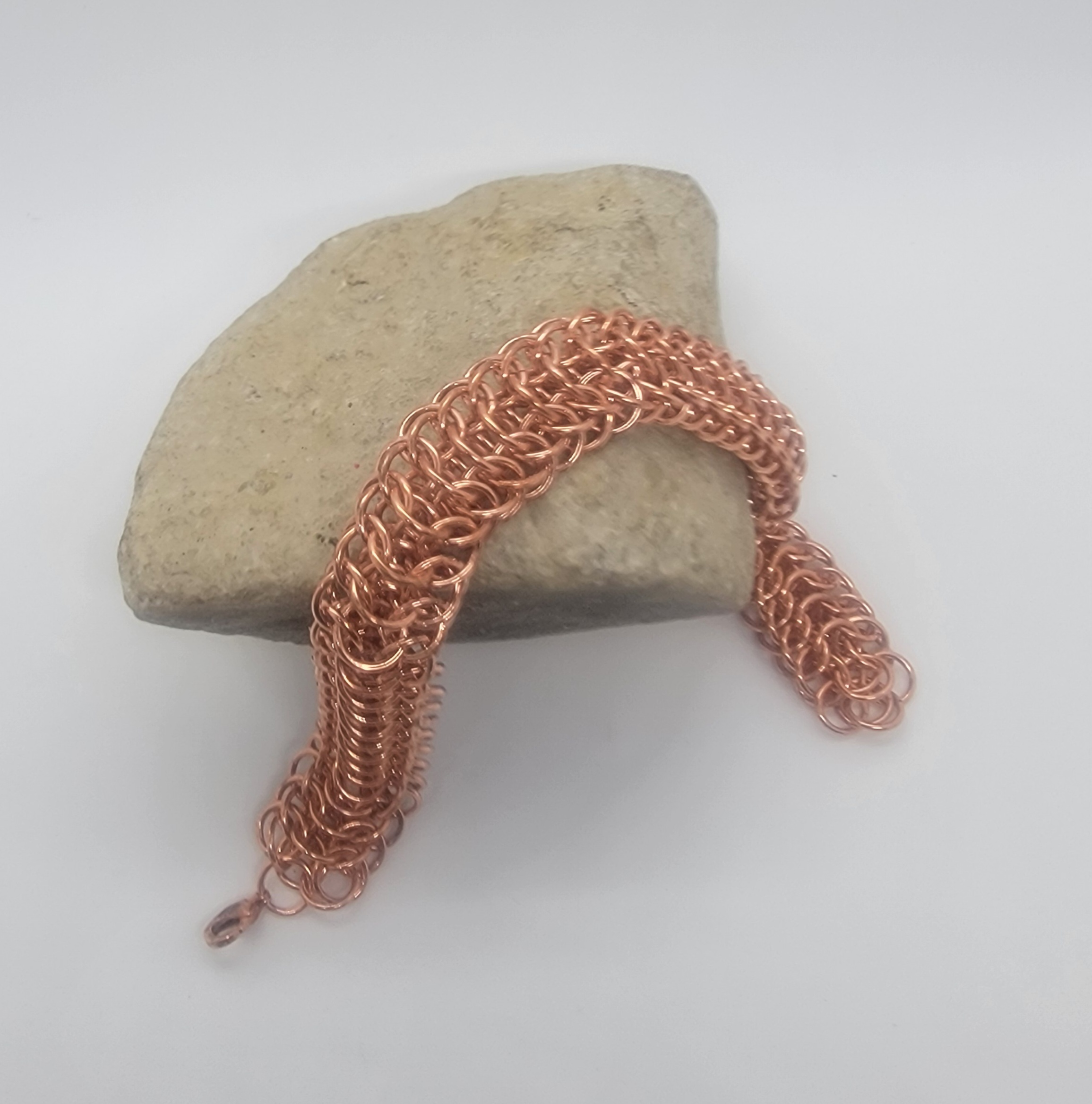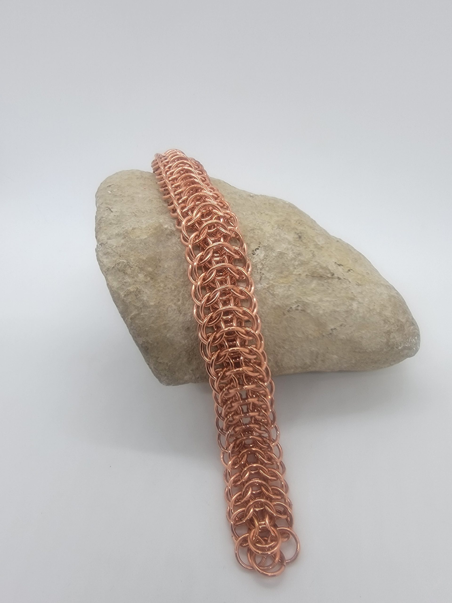 Explore solid copper chainmaille bracelets in a variety of weaves and styles. Handwoven for durability and comfort, these pieces showcase copper’s natural warmth and its evolving patina over time. The warm copper finish brings out the sculptural details of the weave and will naturally develop a rich patina over time.