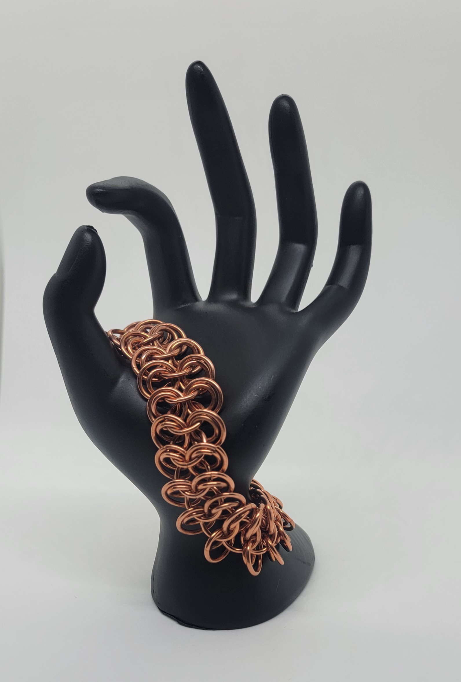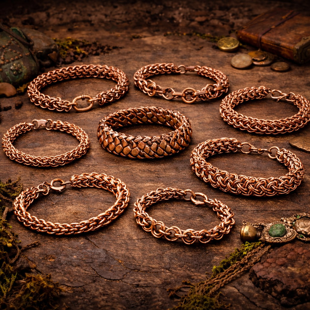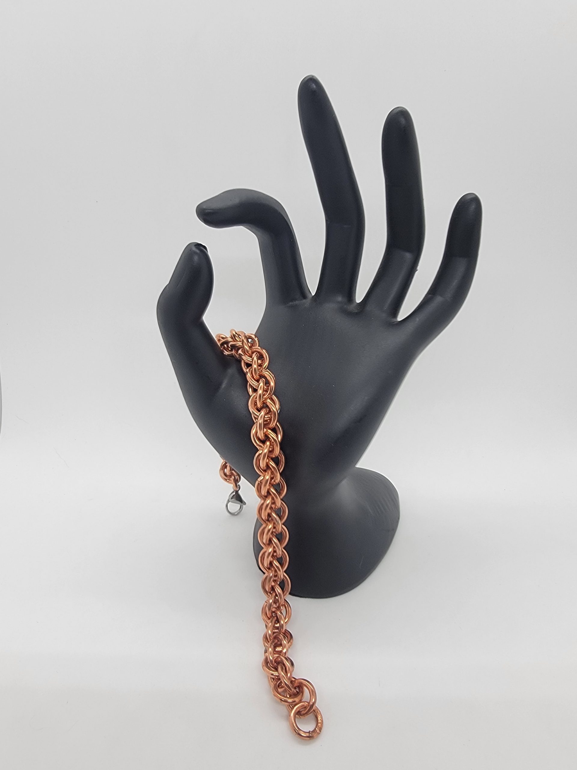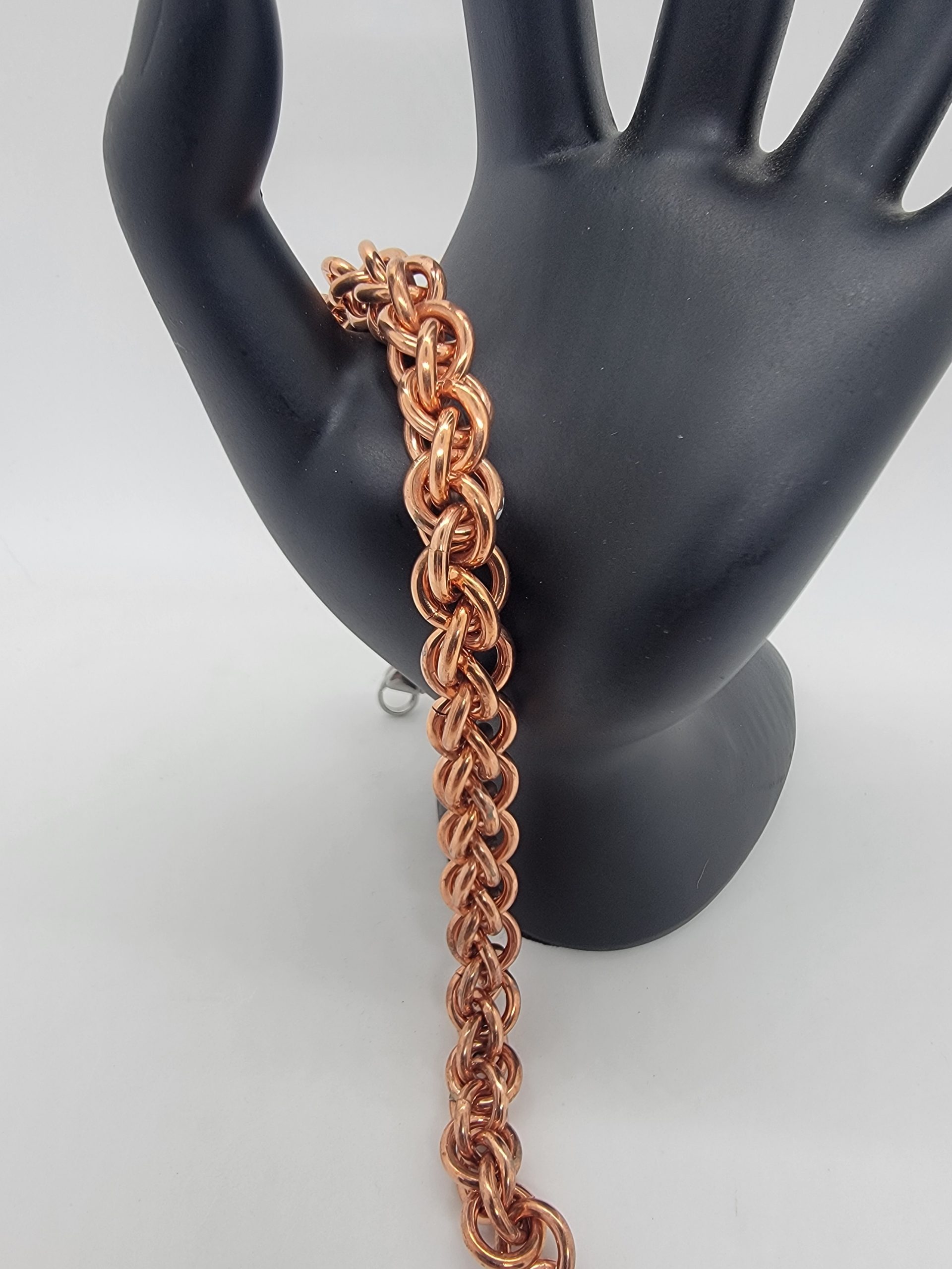 Explore solid copper chainmaille bracelets in a variety of weaves and styles. Handwoven for durability and comfort, these pieces showcase copper’s natural warmth and its evolving patina over time. The warm copper finish brings out the sculptural details of the weave and will naturally develop a rich patina over time.