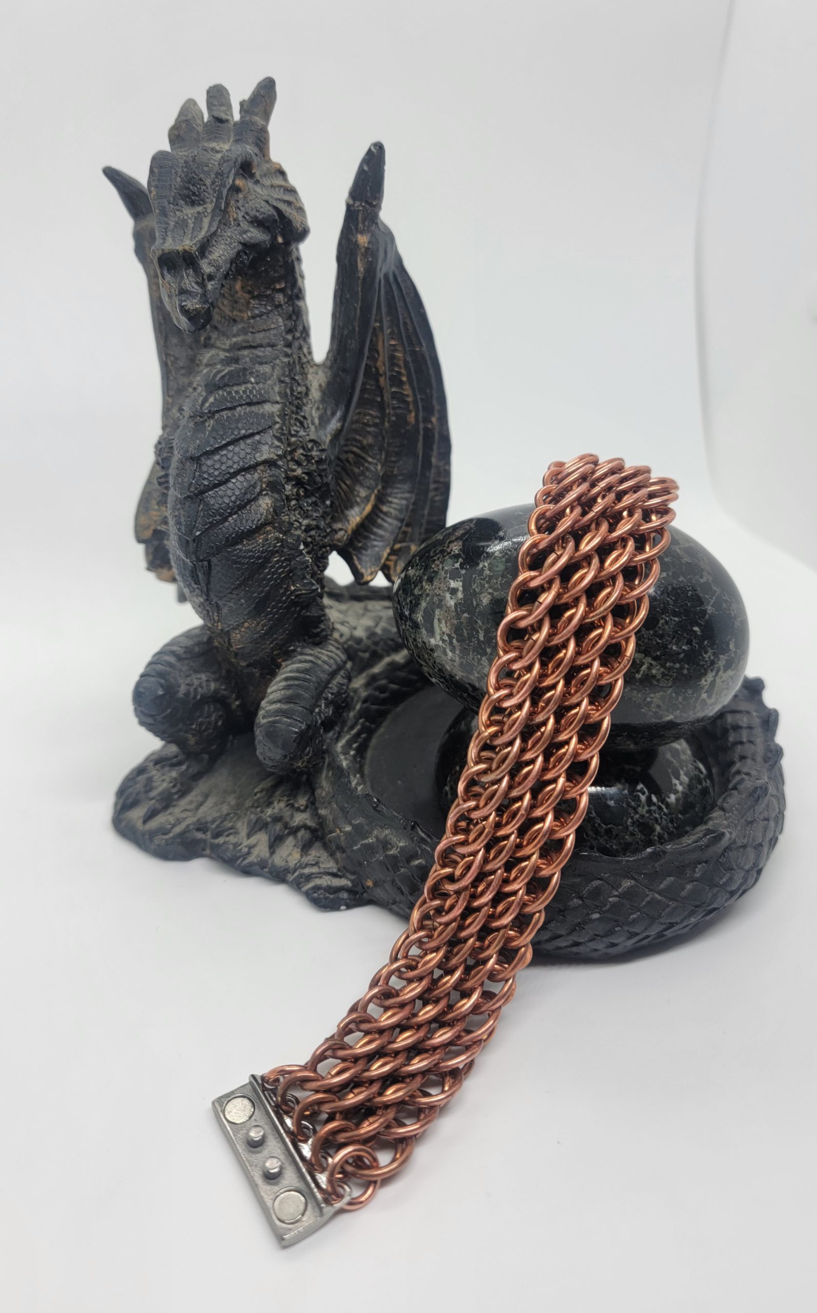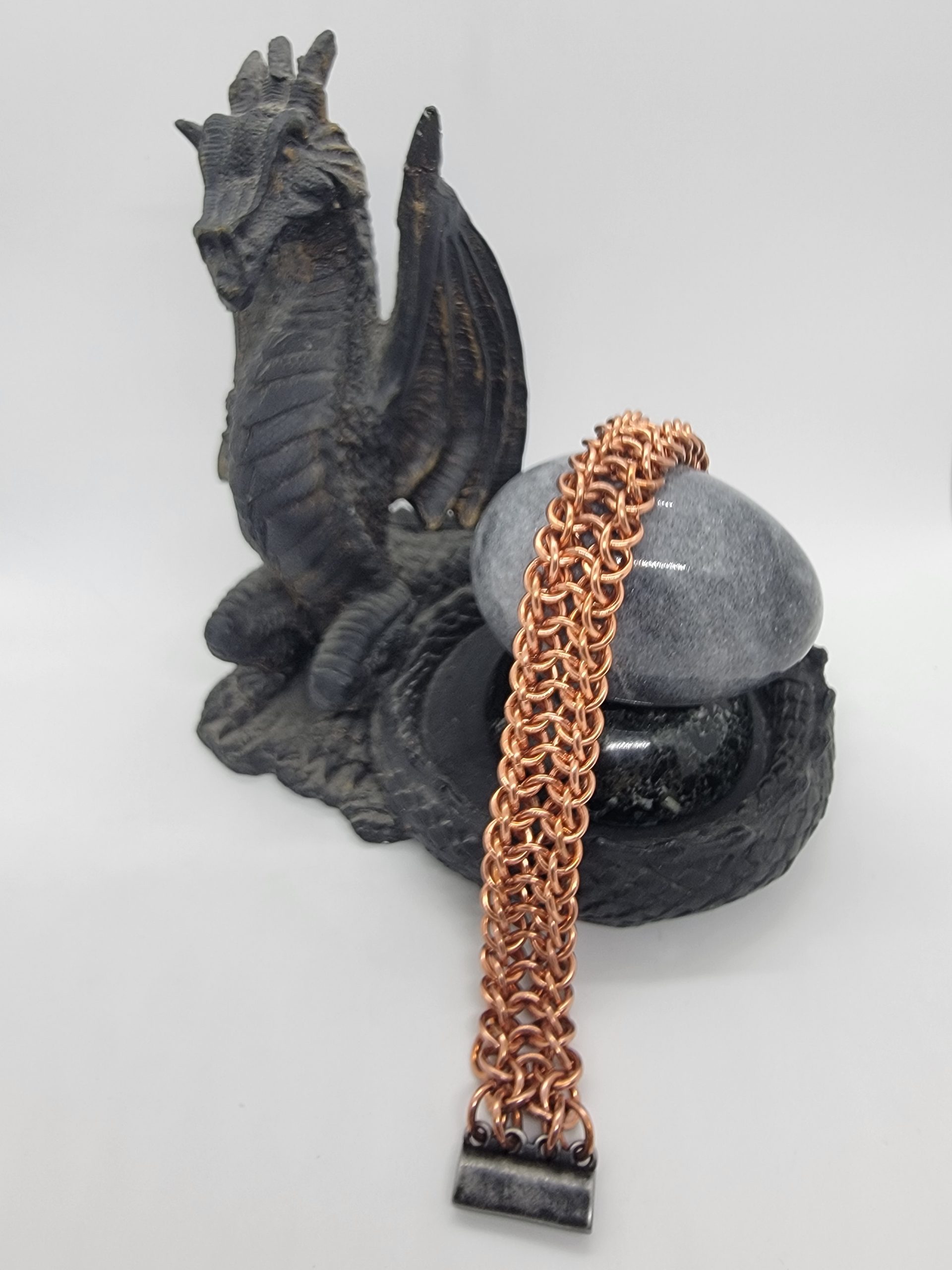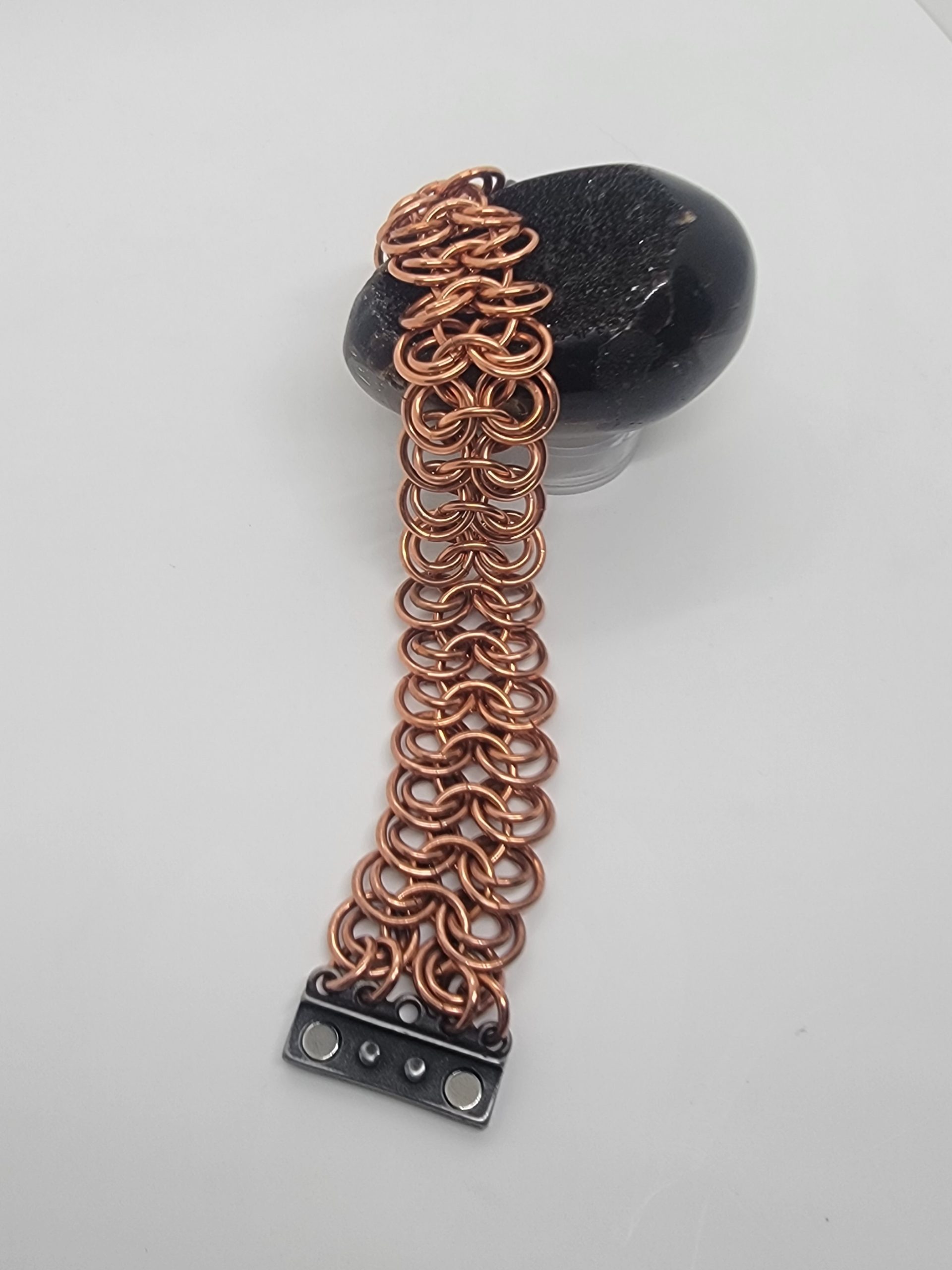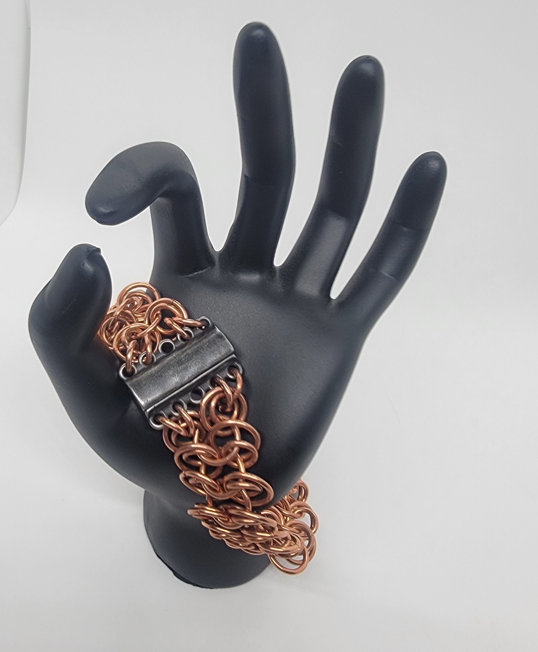 Each bracelet is made ring by ring, blending traditional chainmaille techniques with modern wearable style.
