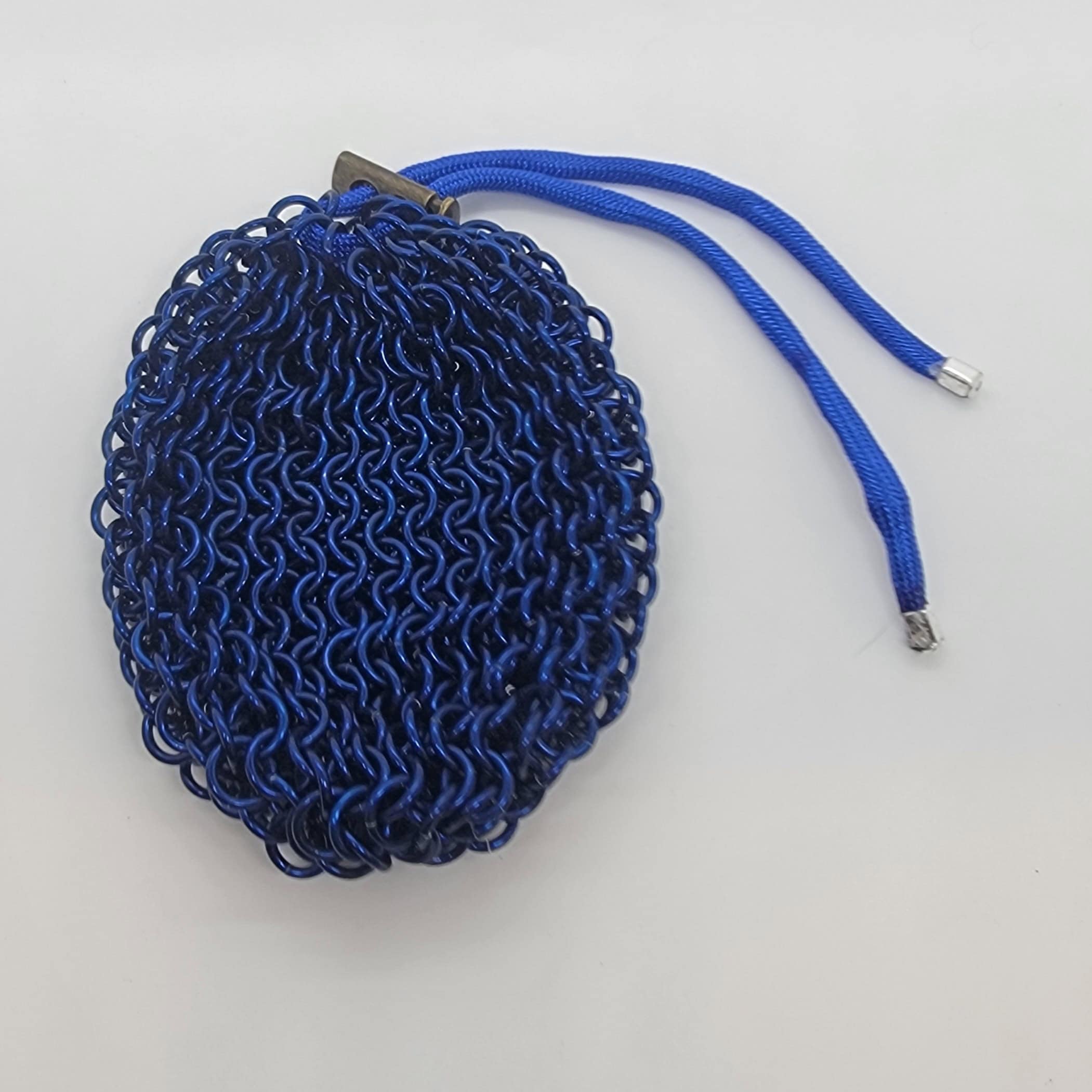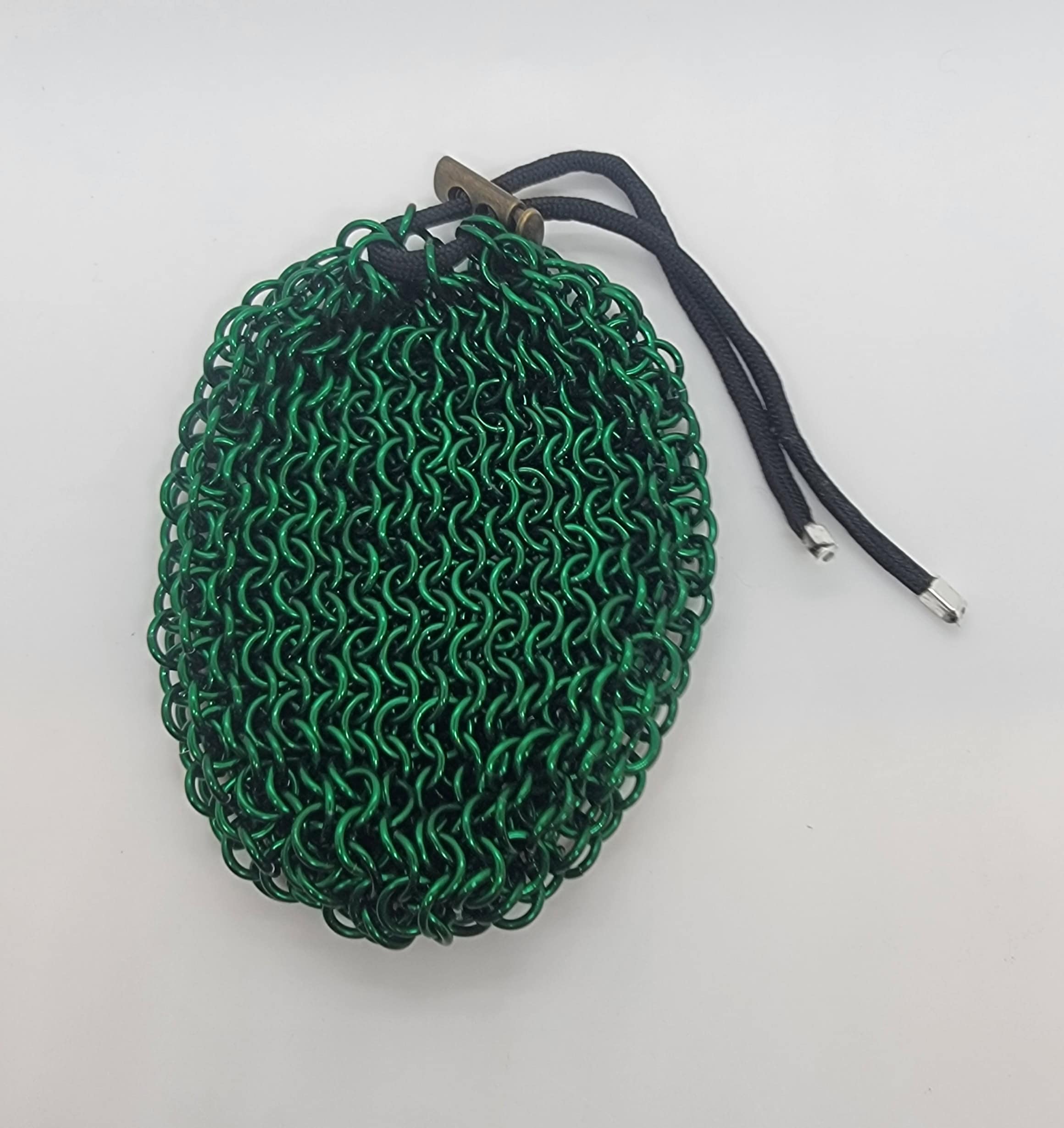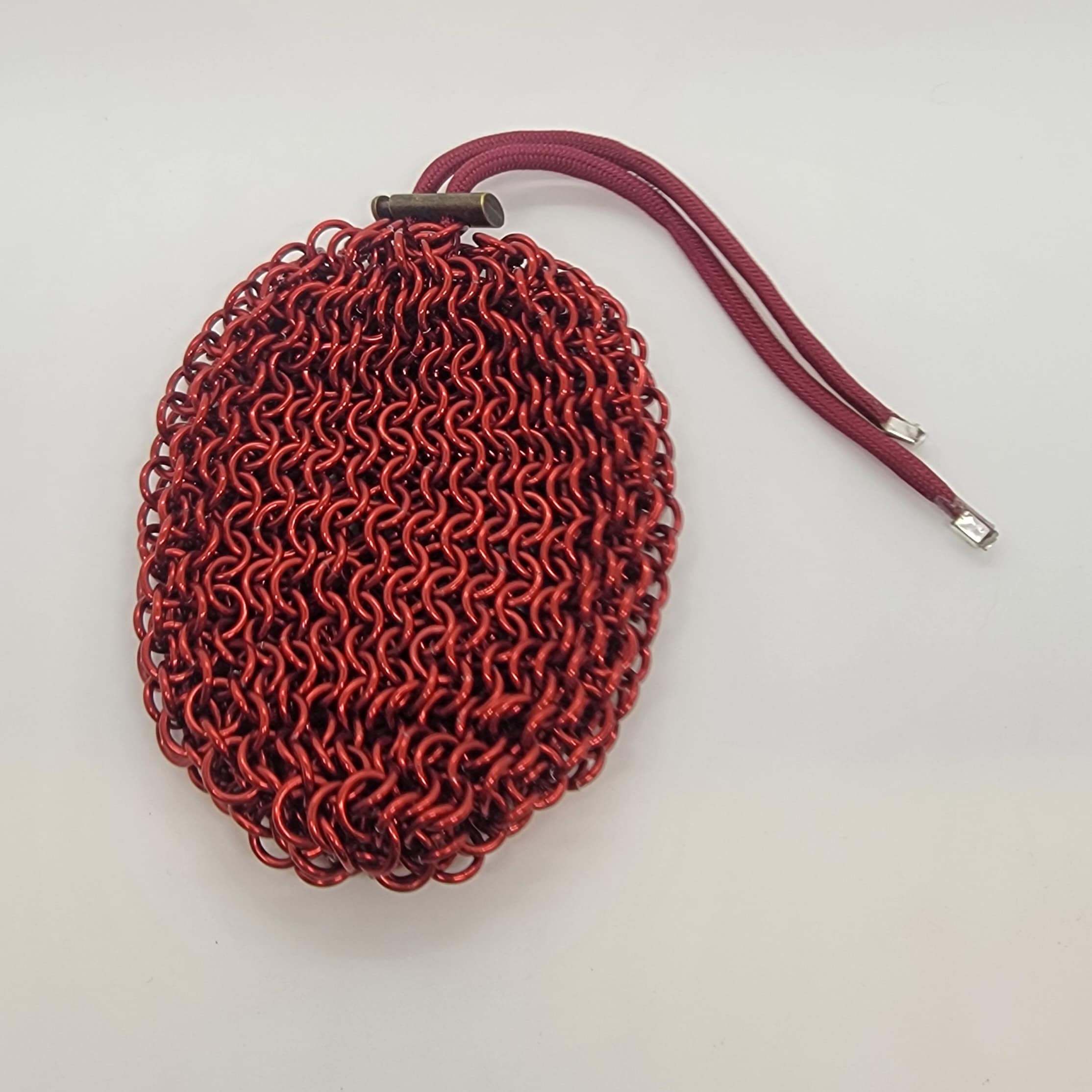 Carry your hoard in style with a hand-woven Geek Maille dice bag, forged from bright anodized aluminum rings in bold red, black, blue, or green. Built with classic chainmaille strength and a smooth, flexible drape, these bags keep your dice safe, rattle-ready, and adventure-approved. Perfect for tabletop gamers, dungeon delvers, and anyone who likes their gear with a bit of armor class. Constructed from hard temper anodized rings in a European 4-1 mesh. It comes with a durable paracord drawstring, metal cord lock, and metal cord ends. Large/Small holds approx. 90/30 standard polyhedral dice. Small bag shown in photo. *Dice not included