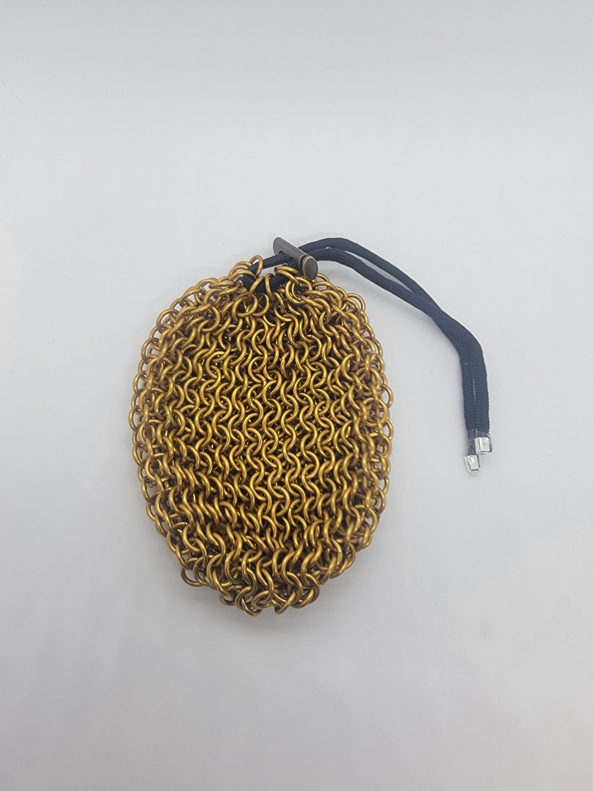 Carry your hoard in style with a hand-woven Geek Maille dice bag, forged from bright anodized aluminum rings in bold red, black, blue, or green. Built with classic chainmaille strength and a smooth, flexible drape, these bags keep your dice safe, rattle-ready, and adventure-approved. Perfect for tabletop gamers, dungeon delvers, and anyone who likes their gear with a bit of armor class. Constructed from hard temper anodized rings in a European 4-1 mesh. It comes with a durable paracord drawstring, velvet lining, metal cord lock, and metal cord ends. Large/Small holds approx. 90/30 standard polyhedral dice. Small bag shown in photo. *Dice not included